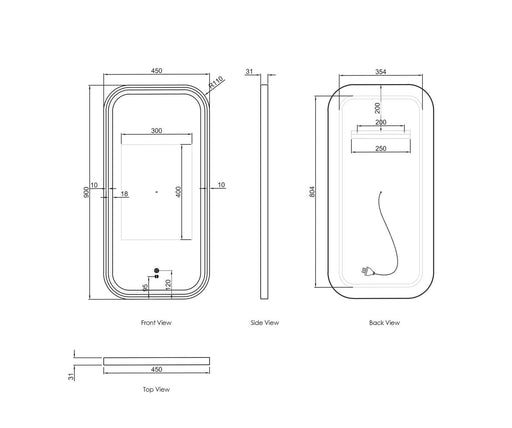OttiOTTI NEWPORT FRAMELESS RECTANGULAR LED MIRROR 3 COLOUR LIGHTS 450X900MM Also Available in Frame Matte Black and Brushed Gold Product Features: P...