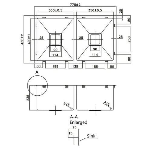 View full detailsHandmade Stainless Steel Double Bowl Kitchen Sink 775mm