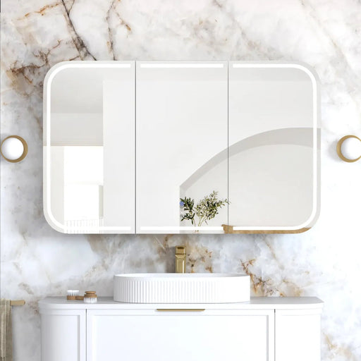 OttiOTTI NEWPORT MATTE WHITE LED SHAVING CABINET 1500X750MM Also Available in 900mm and 1200mm Product Features: Colour: Matte White Material: Curve...