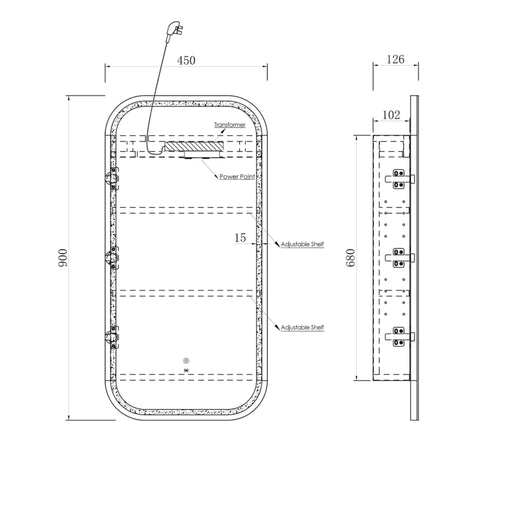 View full detailsOtti Noosa Black Oak Led Shaving Cabinet With Powerpoint 450X900mm