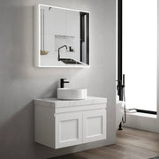 OTTI MOONLIGHT LED MATTE WHITE WALL HUNG SHAVING CABINET 750X650MM