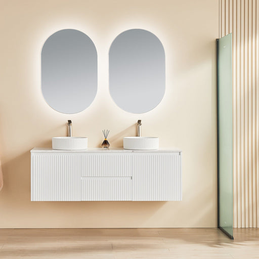 ABS RivaBali Series Fluted Design Luxury Vanity in Matt White, featuring a durable PVC coating and measuring 1535x495x600mm. This wall-hung vanity is desig...