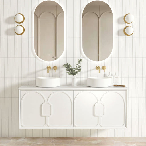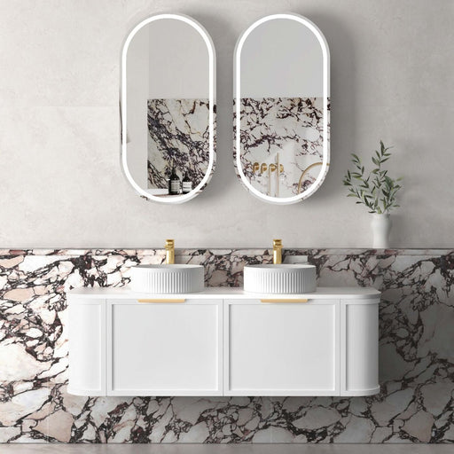 View full detailsOtti Bondi Matte White Fluted 1500mm Curve Double Bowl Wall Hung Vanity