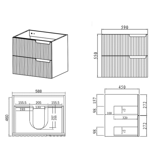 View full detailsOtti Byron Woodland Oak Fluted 600mm Single Bowl Wall Hung Vanity