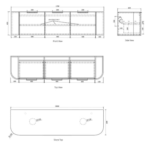 OttiProduct Features: Product Code: BO1800W Colour: Matte White Dimensions: 1800mm X 450mm X 450mm Material: High Moisture Resistant Plywood Mounting:...