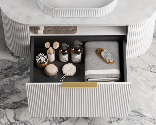 View full detailsOtti Bondi Matte White Fluted 900mm Curve Single Bowl Wall Hung Vanity