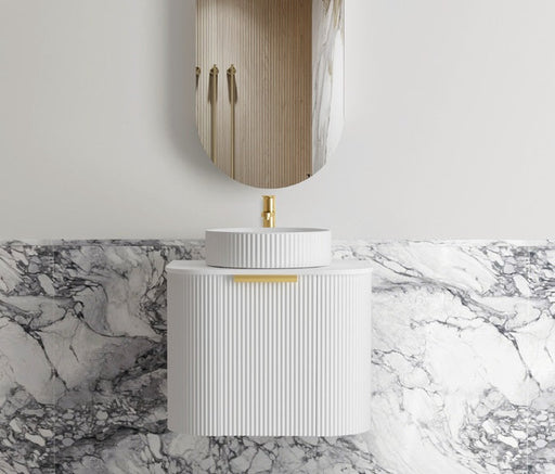 View full detailsOtti Bondi Matte White Fluted 600mm Curve Single Bowl Wall Hung Vanity
