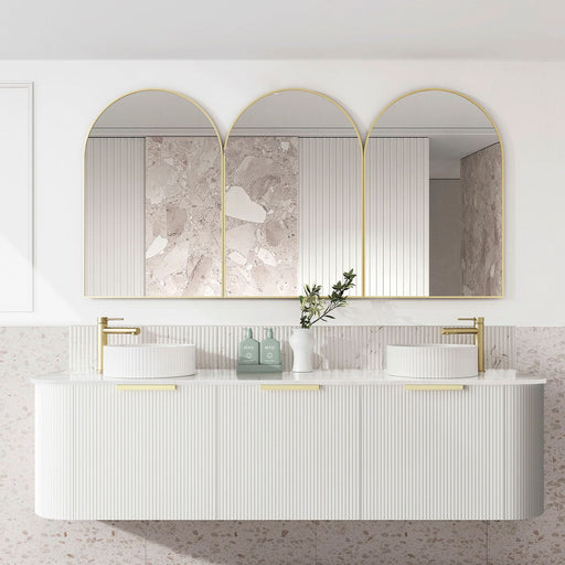 View full detailsOtti Bondi Matte White Fluted 1800mm Curve Double Bowl Wall Hung Vanity