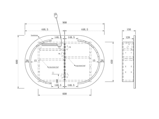 OttiOTTI BONDI MATTE WHITE LED SHAVING CABINET WITH POWERPOINT 900X600MM Also Available in Black Oak and Natural Oak Also Available In 1200MM, 1500MM a...
