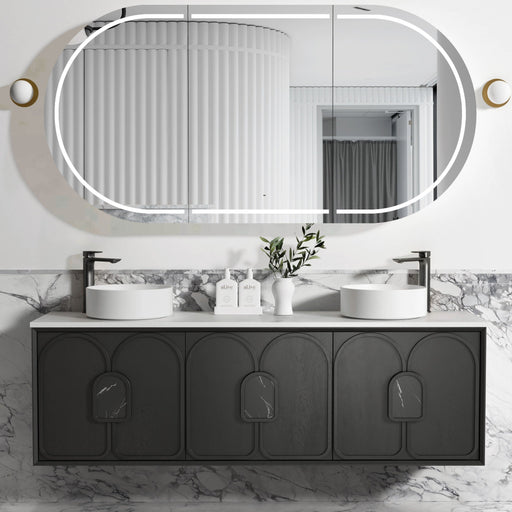 View full detailsOtti Hampshire Satin Black 1800mm Curve Double Bowl Wall Hung Vanity