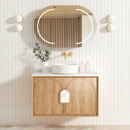 View full detailsOtti Bondi Woodland Oak Fluted 900mm Curve Single Bowl Wall Hung Vanity