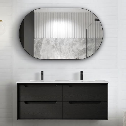 OttiOTTI BYRON BLACK OAK 1200MM DOUBLE BOWL WALL HUNG VANITY Also Available in Natural Oak Also Available in Single Bowl Vanity Vanity and Stone Top S...