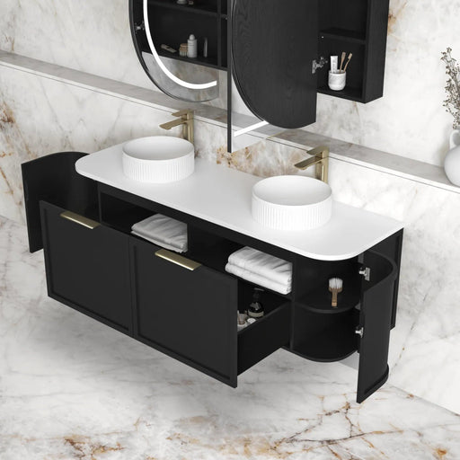 OttiOTTI HAMPSHIRE SATIN BLACK 1500MM CURVE DOUBLE BOWL WALL HUNG VANITY Also Available in 600MM, 750MM, 900MM, 1200MM and 1800MM Also Available in Sa...