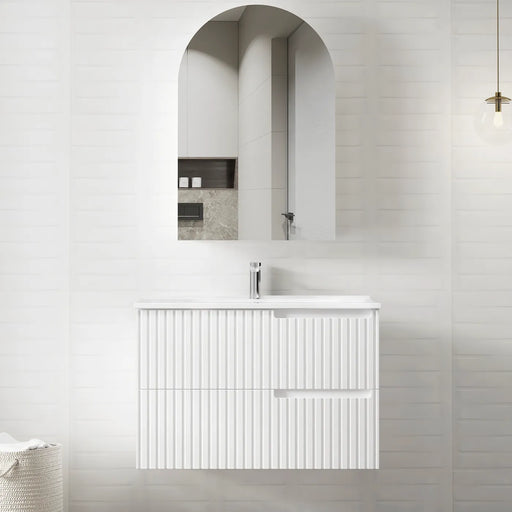 View full detailsOtti Bondi Matte White Fluted 900mm Curve Single Bowl Wall Hung Vanity