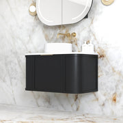 Otti Hampshire Satin Black 900mm Curve Single Bowl Wall Hung Vanity