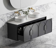 Otti Laguna Black American Oak 1500mm Double Bowl Wall Hung Vanity