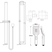 Square Sliding Shower Rail With 3 Mode Handheld Shower Wall Connector Set